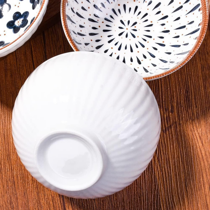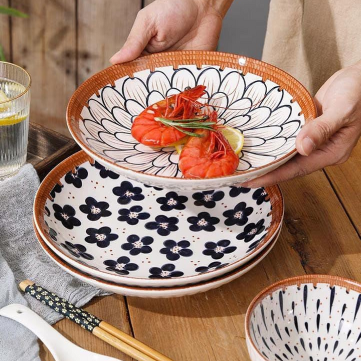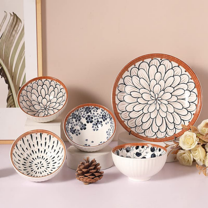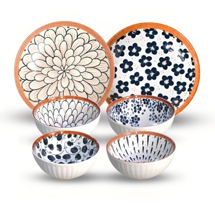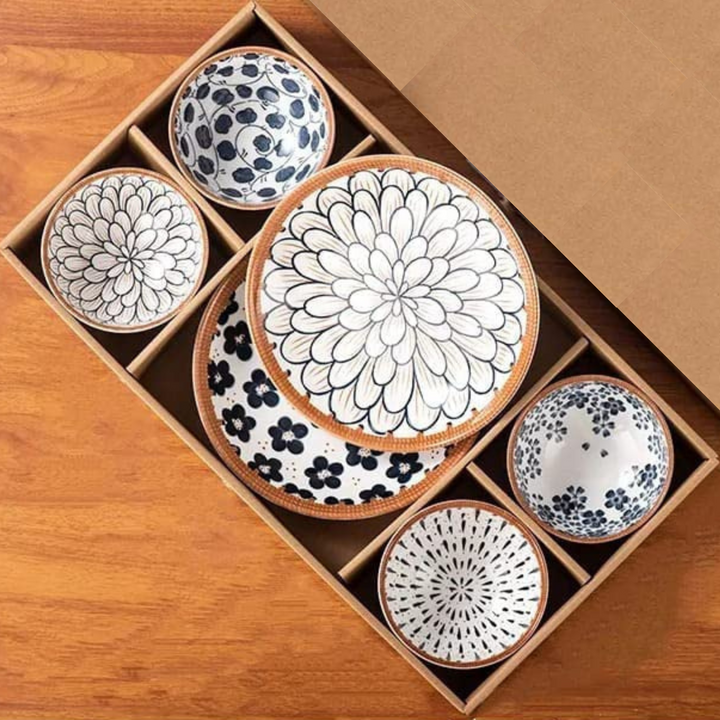 - Complete Dinnerware Set: Includes 4 bowls and 2 plates (6 pieces total), beautifully packed in a premium gift box. Each piece is hand-painted with elegant white and blue floral and geometric patterns for a timeless appeal.
