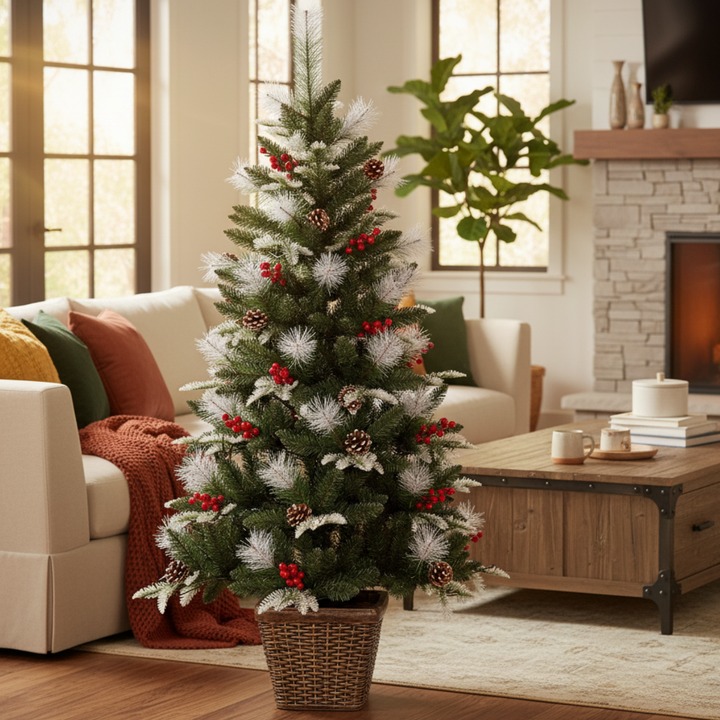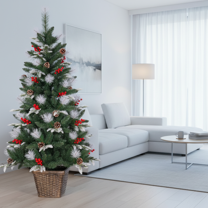 - π Elegant Frosted Christmas Tree Design β Bring home the holiday magic with this 155 cm snow-frosted Christmas tree adorned with realistic pine cones and bright red berries. Its lifelike charm and wintery texture add a cozy, festive glow to any space.