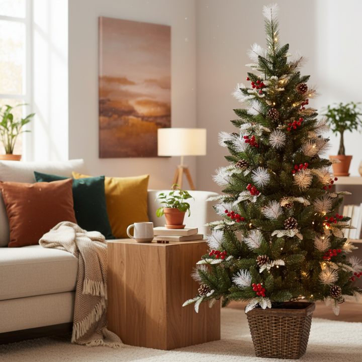 Built from high-quality, durable materials, the tree offers a full and lush appearance while remaining lightweight and easy to assemble. The sturdy potted base keeps it perfectly balanced, making it suitable for both small and large spaces.