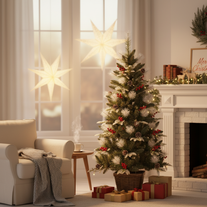 - β¨ Easy Assembly & Fluffing β Comes pre-potted and designed for quick setup. Simply unpack, adjust the branches for a full look, and your tree is ready to decorate with lights, ornaments, ribbons, or garlands.