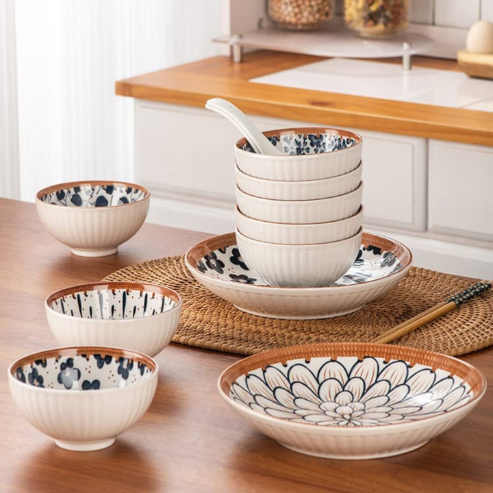 - Elegant Hand-Painted Design: Every bowl showcases delicate underglaze artistry with simple lines, floral accents, and geometric motifs that bring timeless elegance to your dining table.