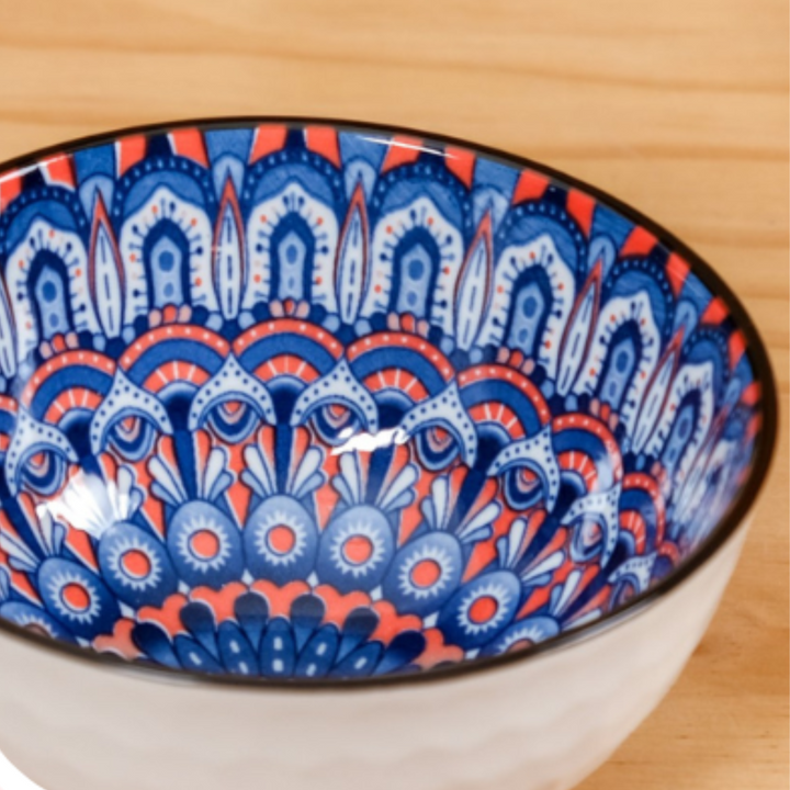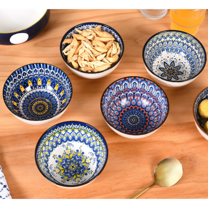 - Intricate Mandala Artwork: Set of 6 ceramic bowls featuring elegant, colorful mandala patterns that add charm and sophistication to your dining table.