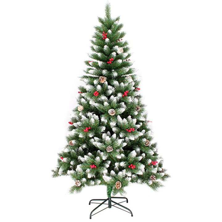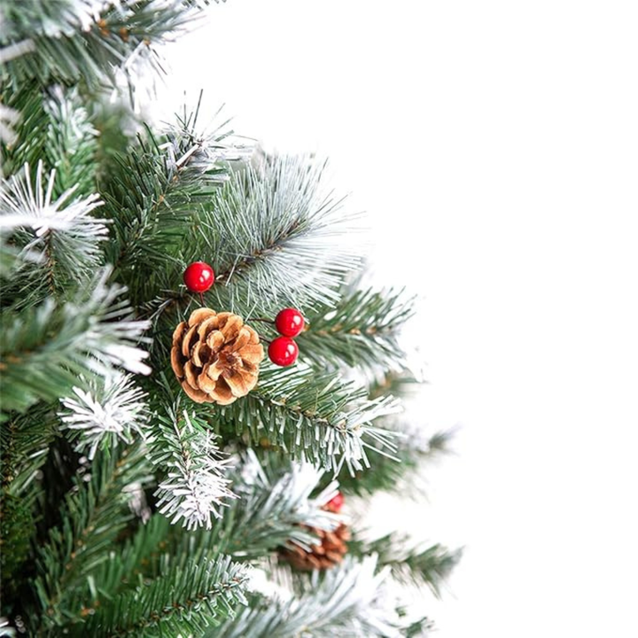 - 🎅 Realistic & Festive Design – Bring home the magic of Christmas with NYRWANA’s snow-flocked artificial pine tree. Adorned with natural-looking pine cones and vibrant red berries, it creates a cozy winter wonderland feel — perfect for festive celebrations.