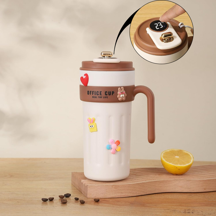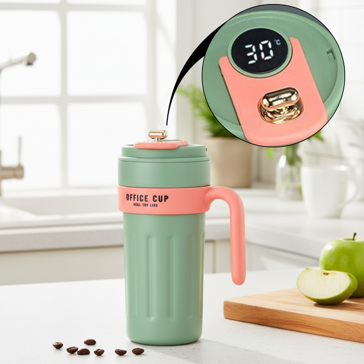 - 💡 Smart LED Temperature Display – The intelligent touch-screen lid shows real-time liquid temperature, helping you enjoy your drink safely and at the perfect warmth, no more accidental burns or cold sips.