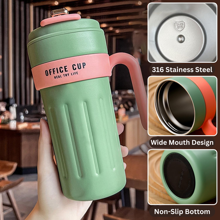 - 💧 Spill-Resistant Design – Equipped with a secure sealing lid and tight silicone ring, this insulated travel mug prevents leaks and spills, making it perfect for office desks, travel bags, and car cup holders.