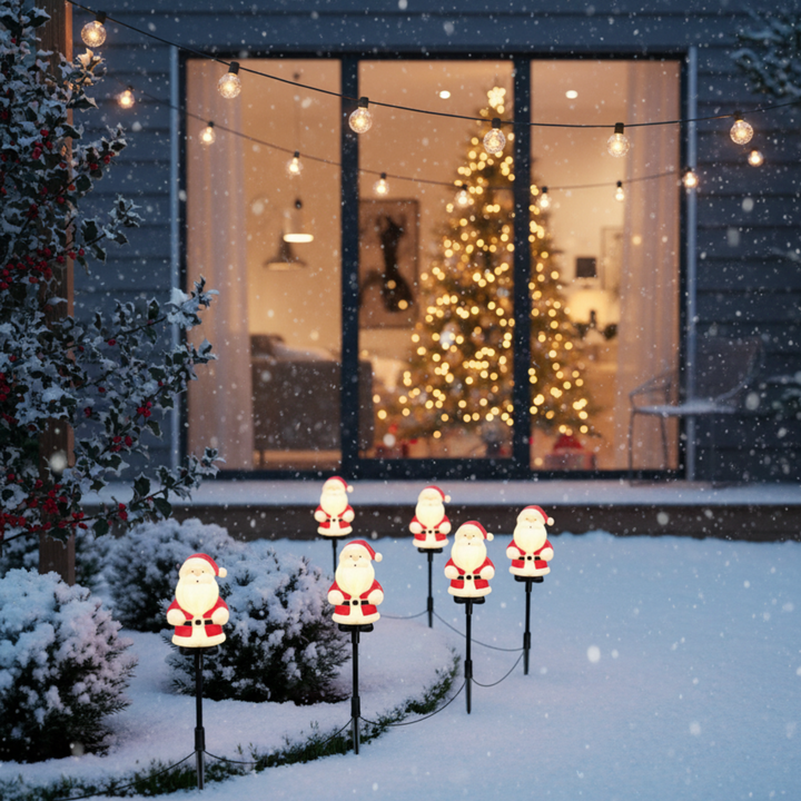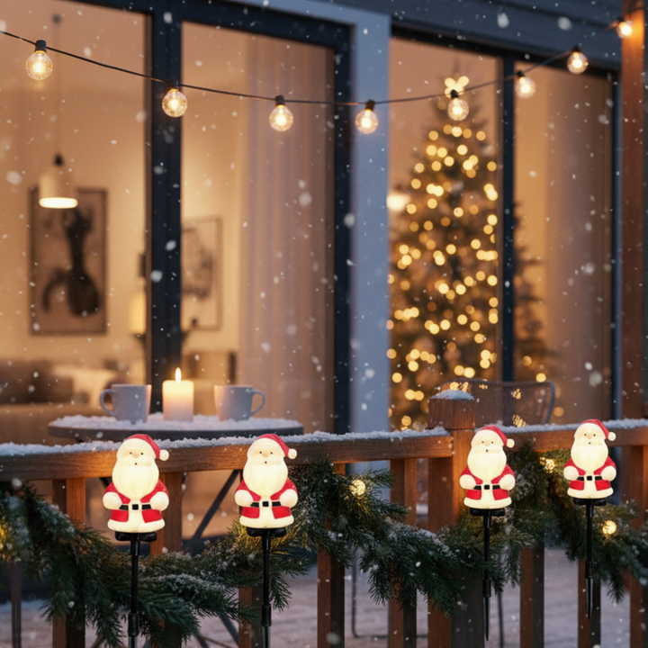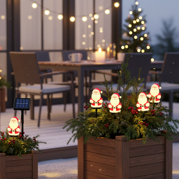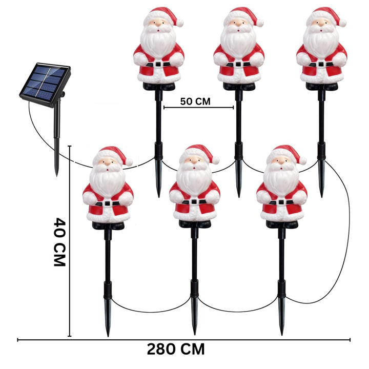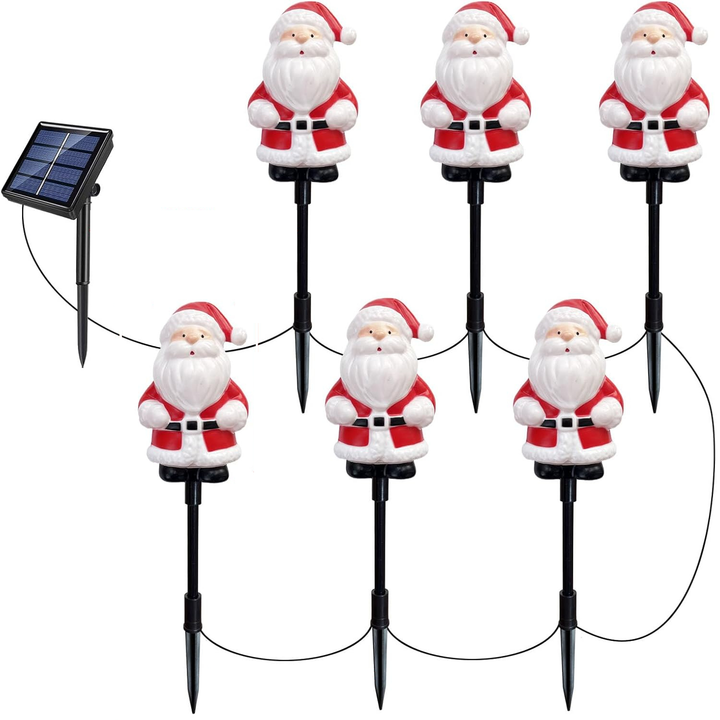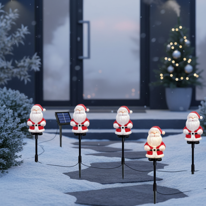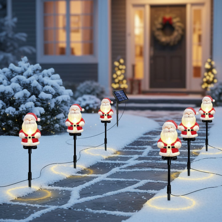 - π Festive Santa Claus Design β Bright, colorful, and eye-catching, these NYRWANA Solar Santa Claus Stake Lights bring cheerful Christmas spirit to your garden, pathway, or lawn. Perfect for festive outdoor displays.