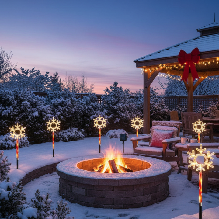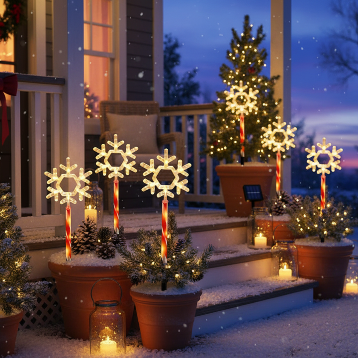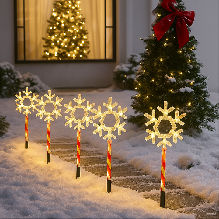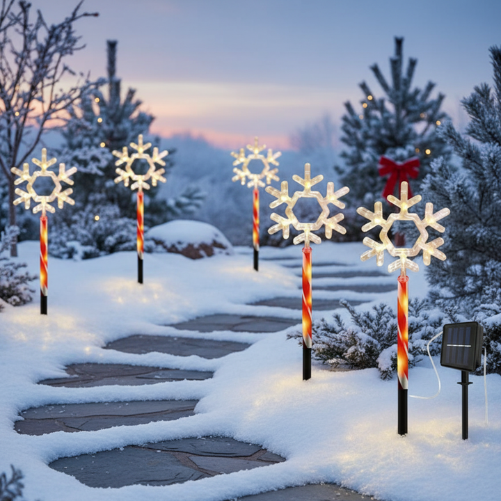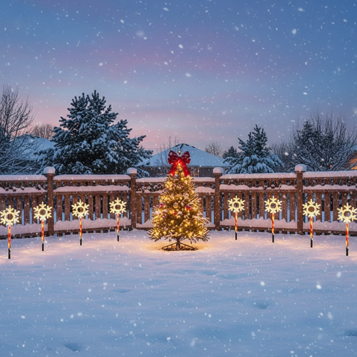 - ❄️ Charming Snowflake Christmas Decor – Brighten your garden this festive season with NYRWANA Snowflake Solar Pathway Lights, featuring delicate snowflake designs that add a magical winter glow to your yard, lawn, patio, or walkway.
