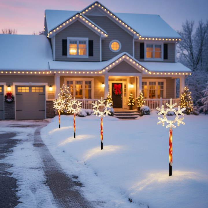 - ⚙️ Easy Installation Anywhere – Simply insert the stake into the ground and enjoy beautiful glowing snowflakes lighting up your driveway, garden, or yard. Perfect for Christmas parties, pathways, and winter landscapes.